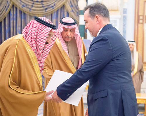 وقد أجريت للسفراء المراسم المعتادة في مثل هذه المناسبة. حضر مراسم تسليم أوراق اعتماد السفراء، صاحب السمو الأمير فيصل بن فرحان بن عبدالله وزير الخارجية، ومعالي وزير الدولة عضو مجلس الوزراء مستشار الأمن الوطني الدكتور مساعد بن محمد العيبان، ومعالي رئيس الديوان الملكي الأستاذ فهد بن محمد العيسى، ومعالي رئيس المراسم الملكية الأستاذ خالد بن صالح العباد، ومعالي رئيس الحرس الملكي الفريق أول ركن سهيل بن صقر المطيري، ووكيل وزارة الخارجية لشؤون المراسم عزام بن عبدالكريم القين.