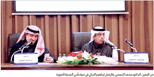 تقديم د. محمد الدبيسي لمحاضرة د. إبراهيم التركي عن مضادات ومصدات الملاحق الثقافية في نادي المدينة المنورة الأدبي (مساء الأربعاء 1-1-2020 م)