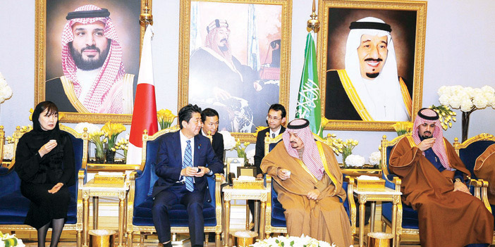 وصل إلى الرياض أمس دولة رئيس وزراء اليابان شينزو آبي والوفد المرافق له. وكان في استقباله في مطار الملك خالد الدولي, صاحب السمو الملكي الأمير فيصل بن بندر بن عبد العزيز أمير منطقة الرياض, وصاحب السمو الأمير فيصل بن عبد العزيز بن عياف أمين المنطقة, ومعالي وزير الاقتصاد والتخطيط رئيس الجانب السعودي للمجموعة المشتركة للرؤية السعودية اليابانية 2030 الأستاذ محمد بن مزيد التويجري -الوزير المرافق-, وسفير خادم الحرمين الشريفين لدى اليابان نايف الفهادي, ومدير شرطة منطقة الرياض اللواء فهد بن زيد المطيري, وسفير اليابان لدى المملكة تسوكاسا ايمورا.