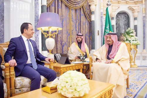 استقبل خادم الحرمين الشريفين الملك سلمان بن عبد العزيز آل سعود - حفظه الله أمس معالي وزير خارجية جمهورية قبرص نيكوس كريستودوليديس. ونقل معاليه في بداية الاستقبال لخادم الحرمين الشريفين، تحيات فخامة الرئيس نيكوس أناستاسيادس رئيس جمهورية قبرص، فيما حمّله الملك المفدى تحياته لفخامته. وقد جرى خلال الاستقبال، بحث العلاقات الثنائية بين البلدين الصديقين وسبل تعزيزها وتطويرها، واستعراض القضايا الإقليمية والدولية ذات الاهتمام المشترك. حضر الاستقبال، صاحب السمو الأمير فيصل بن فرحان بن عبد الله وزير الخارجية، ومعالي مساعد السكرتير الخاص لخادم الحرمين الشريفين الأستاذ تميم بن عبد العزيز السالم، وسفير خادم الحرمين الشريفين لدى جمهورية قبرص خالد بن محمد الشريف، وسفير جمهورية قبرص لدى المملكة ستافروس افجوستيديس، وعدد من المسؤولين.