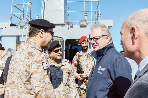 رعى معالي قائد القوات البحرية الملكية السعودية الفريق الركن فهد بن عبدالله الغفيلي أمس حفل استقبال الدفعة الأولى من مشروع الزوارق الاعتراضية السريعة الفرنسية من نوع (HSI32) بالمنطقة الشرقية، وذلك في إطار التعاون المشترك بين المملكة وجمهورية فرنسا في مجال التصنيع والتعاون العسكري. واشتملت الاتفاقية الموقعة مع شركة (CMN) الفرنسية تصنيع وتوريد عدد من الزوارق السريعة من نوع (HSI32)، جزء منها يصنع في فرنسا والجزء الآخر في المملكة ضمن برنامج نقل التقنية، حيث تعد هذه الزوارق من أحدث الزوارق الاعتراضية البحرية السريعة في العالم لما تتميز به من إمكانات عالية جداً. وأوضح معالي قائد القوات البحرية الملكية السعودية الفريق الركن فهد بن عبدالله الغفيلي في كلمة ألقاها خلال حفل الاستقبال، أن هذا اليوم يعتبر من أيام القوات البحرية الخالدة، ولحظات يسعد بها الجميع وذلك بوصول الدفعة الأولى من مشروع زوارق الاعتراض السريعة (HSI32)، مثمنًا الدعم غير المحدود الذي تحظى به قواتنا المسلحة عامة وقواتنا البحرية بشكل خاص من قبل القيادة الرشيدة بقيادة خادم الحرمين الشريفين الملك سلمان بن عبدالعزيز آل سعود القائد الأعلى لكافة القوات العسكرية -أيده الله- وصاحب السمو الملكي الأمير محمد بن سلمان بن عبدالعزيز ولي العهد نائب رئيس مجلس الوزراء وزير الدفاع وسمو نائب وزير الدفاع -حفظه الله-. وأضاف معاليه أن ما وضع بين أيدي ضباط وأفراد القوات المسلحة من معدات وأجهزة ذات تقنية متطورة يتطلب المحافظة عليها بالاستخدام الأمثل، وتطبيق أسس الصيانة لضمان الاستدامة، كما نوه بالحرص على التدريب المستمر، وذلك لتحقيق الجاهزية المطلوبة لتنفيذ المهام بالشكل الصحيح واليقظة التامة في مناطق العمليات التي ستعمل بها هذه الزوارق، وردع أي تهديد للمصالح الاستراتيجية للمملكة. كما أعرب معالي الفريق الغفيلي عن سعادته بوصول هذه الزوارق الثلاثة، مشيرا إلى أنها ستستكمل منظومة الزوارق السريعة وصولها خلال الأشهر القادمة، وستسهم هذه الزوارق في رفع مستوى الجاهزية والاستعداد القتالي لتعزيز الأمن البحري في المنطقة وستشارك مع وحدات الأسطول الشرقي المختلفة في حماية المصالح الحيوية والإستراتيجية للمملكة العربية السعودية.وقال معاليه: أصبحنا نرى الآن بوادر مشاريع القوات البحرية الضخمة والكبيرة، وهذه أولى ثمارها إن شاء الله، حيث إنه خلال الشهالقادم بحول الله ستستقبل القوات البحرية الملكية السعودية عدد من الطائرات العامودية القتالية متعددة المهام التي سيعمل بعضها في الأسطول الشرقي التي ستكون داعمة بشكل كبير للجاهزية القتالية للقوات البحرية. وقدم معالي الفريق الغفيلي في ختام كلمته شكره لجميع منسوبي القوات البحرية من ضباط وأفراد وموظفين على الجهود التي تبذل، متمنياً لهم التوفيق والنجاح.