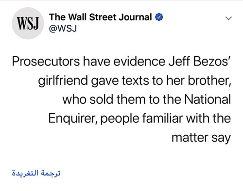 تكسرت محاولات «صبيانية» سريعًا، وانكشفت خططهم المزعومة في محاولاتهم ربط الاختراق المزعوم لهاتف الملياردير الأمريكي جيف بيزوس بالمملكة وسمو ولي العهد صاحب السمو الملكي الأمير محمد بن سلمان، وذلك حين أعلنت صحيفة «وول ستريت جورنال» الأمريكية أدلة تمتلكها السلطات المختصة المحلية، بما فيها المدعون الاتحاديون في مدينة نيويورك، تكشف تورط شقيق صديقة الملياردير الأمريكي ومؤسس «أمازون» جيف بيزوس في فضيحة «بيزوس» الشهيرة.