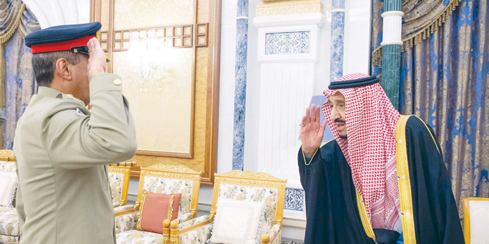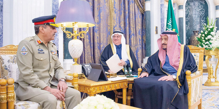 استقبل خادم الحرمين الشريفين الملك سلمان بن عبد العزيز آل سعود ـ حفظه الله ـ، أمس، معالي رئيس هيئة الأركان المشتركة الباكستانية الفريق الأول الركن نديم رضا، والوفد المرافق له. وجرى خلال الاستقبال، استعراض العلاقات الوثيقة بين المملكة وباكستان، والسبل الكفيلة بتعزيز التعاون الثنائي بين البلدين وبخاصة في المجالات العسكرية.
