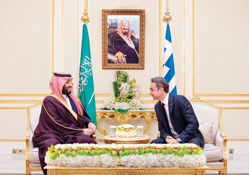 عقد صاحب السمو الملكي الأمير محمد بن سلمان بن عبد العزيز ولي العهد نائب رئيس مجلس الوزراء وزير الدفاع اجتماعا في الرياض أمس مع دولة رئيس وزراء جمهورية اليونان كيرياكوس ميتسوتاكيس.
