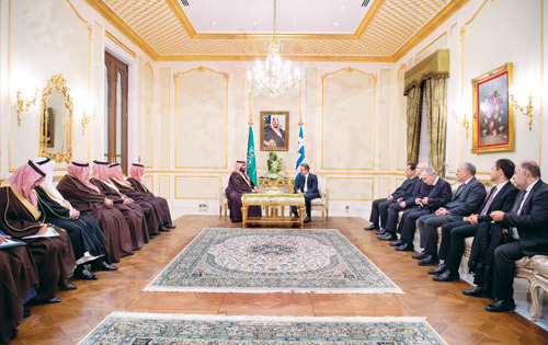 حضر الاجتماع، صاحب السمو الأمير فيصل بن فرحان بن عبد الله وزير الخارجية، ومعالي زير التجارة والاستثمار الدكتور ماجد القصبي، ومعالي وزير الدولة عضو مجلس الوزراء الأستاذ محمد آل الشيخ (الوزير المرافق)، ومعالي رئيس الاستخبارات العامة الأستاذ خالد الحميدان، وسفير خادم الحرمين الشريفين لدى جمهورية اليونان عصام بن إبراهيم بيت المال.