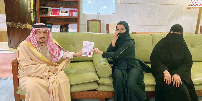 كما استقبل سمو أمير منطقة الرياض في مكتبه بقصر الحكم أمس, أسماء بنت هليل العنزي التي قدمت لسموه إهداء عبارة عن كتاب بعنوان «الألم يصنع الأمل» يحكي تجربتها مع مرض السرطان ومشاركاتها التطوعية والمجتمعية التوعوية بمرض السرطان وتأثيراته النفسية وكيفية مواجهتها.