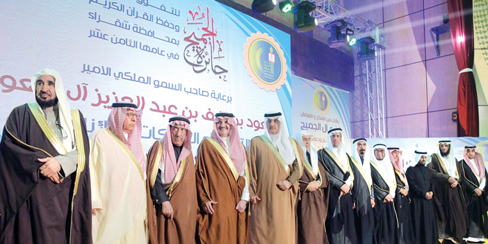 رعى صاحب السمو الملكي الأمير سعود بن نايف بن عبدالعزيز، يوم أمس الأول السبت حفل جائزة الجميح للتفوق العلمي وحفظ القرآن الكريم في دورتها الثامنة عشرة، بحضور سمو الأمير سعود بن عبدالله بن ثنيان وصاحب السمو الملكي الأمير محمد بن سعود بن نايف بن عبدالعزيز، ومحافظ شقراء أ. عادل بن عبداللّه البواردي ورئيس مجلس إدارة الجائزة الشيخ حمد بن عبدالعزيز الجميح، ونائب رئيس شركة الجميح القابضة الشيخ إبراهيم بن محمد بن عبدالعزيز الجميح وأصحاب المعالي والسعادة وأصحاب الجائزة من أسرة الجميح، وضيوف الجائزة، حيث بدئ الحفل بالتقديم للطالبين عبدالله بن محمد الرويس، وسعود بن إبراهيم المقحم، ثم القرآن الكريم للطالب سليمان بن حسّان الدايل.