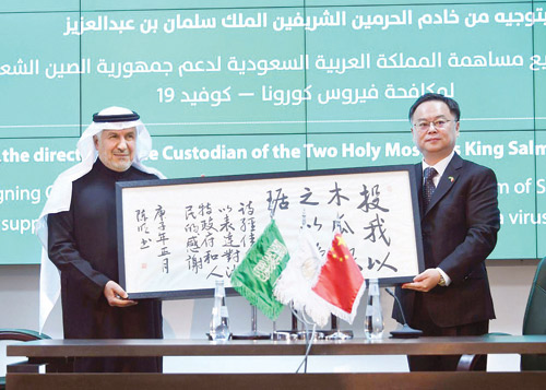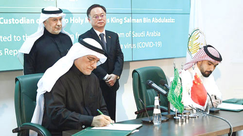 وقّع مركز الملك سلمان للإغاثة والأعمال الإنسانية أمس بحضور السفير الصيني لدى المملكة تشن وي تشينغ ستة عقود مشتركة مع عدد من الشركات العالمية لتأمين أجهزة ومستلزمات طبية لمكافحة فيروس كورونا المستجد (كوفيد 19) في الصين، بالتنسيق مع سفارة جمهورية الصين الشعبية بالمملكة.