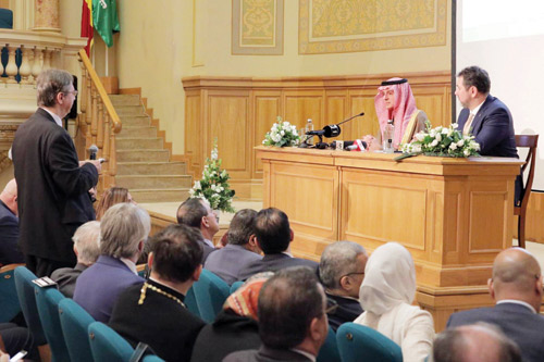 من جهة ثانية شارك الجبير أمس في ندوة في جامعة كارول الأول، في مدينة بوخارست، وذلك خلال زيارته الرسمية لجمهورية رومانيا. واستعرض معاليه في بداية الندوة تطور العلاقات السعودية - الرومانية، وذلك بمناسبة الذكرى السنوية الخامسة والعشرين للعلاقات الدبلوماسية بين البلدين، كما تحدث معاليه عن جهود المملكة في تحقيق الأمن والاستقرار في المنطقة ودول العالم، والأوضاع السياسية الدولية. بعد ذلك أجاب معاليه عن أسئلة واستفسار الحضور، حيث شهدت الندوة حضورًا أمام ممثلي البيئة الجامعية والأكاديمية ومراكز الفكر والصحافة في رومانيا، إضافة إلى أساتذة الجامعات وسفراء الدول العربية المعتمدين لدى جمهورية رومانيا. كما التقى الجبير أمس في بوخارست، عددًا من الإعلاميين وممثلي أبرز وسائل الإعلام الرومانية، وذلك على هامش زيارته الرسمية لجمهورية رومانيا. واستعرض معاليه خلال اللقاءات تطور وأهمية ومتانة العلاقات السعودية الرومانية بمناسبة الذكرى السنوية الخامسة والعشرين للعلاقات الدبلوماسية بين البلدين، مشيراً إلى مواقف المملكة تجاه أبرز القضايا الإقليمية والدولية الراهنة.
