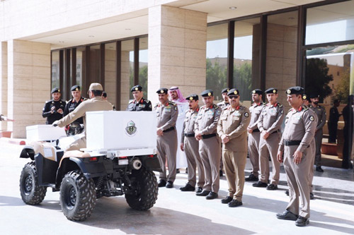 دشَّن معالي مدير الأمن العام الفريق أول ركن خالد بن قرار الحربي بحضور عدد من قيادات الأمن صباح أمس المركبات الأمنية الحديثة لدوريات الأمن، وعددًا من الآليات السريعة والتجهيزات الحديثة لإدارة الأسلحة والمتفجرات التي تضاف لمنظومة التطوير للأمن العام. وقد استهل معاليه حفل التدشين بكلمة تقدم من خلالها بجزيل الشكر والامتنان لصاحب السمو الملكي وزير الداخلية -حفظه الله- على دعمه الدائم لقطاع الأمن العام وإداراته المختلفة، الأمر الذي ساهم في تنويع مجمل الخدمات التي يقدمها الأمن العام للمواطن والمقيم بمنظومته الأمنية والمرورية والخدمية.