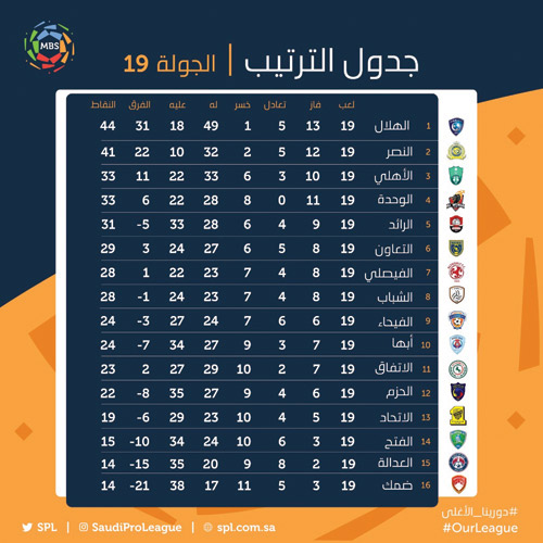 هذا الانتصار رفع رصيد الفريق الهلالي إلى 44 نقطة تمسك بها بموقعه في القمة بفارق النقاط الثلاث، فيما بقي الاتحاد على رصيده السابق 19 نقطة.