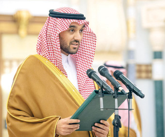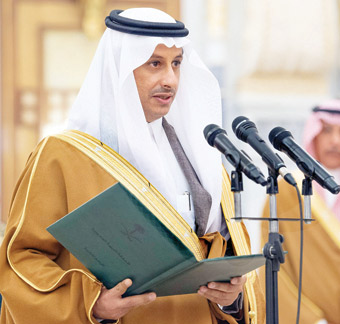 تشرف بأداء القسم أمام خادم الحرمين الشريفين الملك سلمان بن عبد العزيز آل سعود -حفظه الله- أمس، أصحاب السمو والمعالي الوزراء، الذين صدرت الأوامر الملكية بتعيينهم في مناصبهم الجديدة. فقد أدى القسم، كل من صاحب السمو الملكي الأمير عبد العزيز بن تركي الفيصل وزير الرياضة، ومعالي وزير السياحة الأستاذ أحمد بن عقيل الخطيب، ومعالي وزير الاستثمار المهندس خالد بن عبد العزيز الفالح، قائلين (بسم الله الرحمن الرحيم.. أُقسم بالله العظيم أن أكون مخلصاً لديني، ثم لمليكي وبلادي، وأن لا أبوحَ بسر من أسرار الدولة، وأن أحافظ على مصالحها وأنظمتها، وأن أُؤدّيَ أعمالي بالصدق والأمانة والإخلاص). ثم تشرفوا بالسلام على خادم الحرمين الشريفين، واستمعوا إلى توجيهاته - أيده الله -.