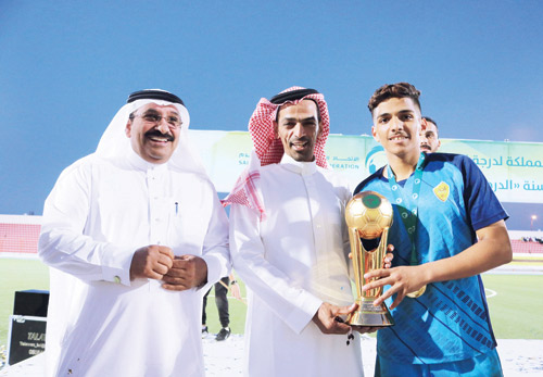 توّج عضو اتحاد القدم بندر الأحمدي، فريق ناشئي أحد بالكأس والميداليات الذهبية لبطولة كأس الناشئين تحت 17 عاماً لدوري الأولى، بعد فوزه على نظيره الطائي الذي حل ثانياً بثلاثة أهداف مقابل لا شيء، فيما تسلم فريق الطائي الفضية وصعدا معاً لدوري الممتاز للناشئين.