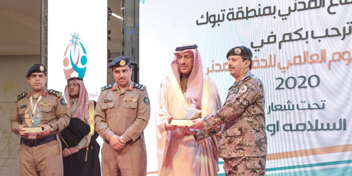 تحت رعاية من صاحب السمو الملكي الأمير فهد بن سلطان بن عبدالعزيز أمير منطقة تبوك شاركت مديرية السجون بمنطقة تبوك متمثلة بشعبة الشؤون الفنية - قسم السلامة بفعاليات اليوم العالمي للدفاع المدني 2020 والمقام في بارك مول تحت شعار «السلامة أولاً»، حيث دشن وكيل إمارة منطقة تبوك محمد بن عبدالله الحقباني الحفل والفعاليات.