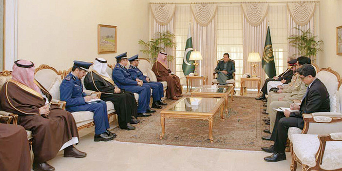 استقبل دولة رئيس وزراء جمهورية الباكستان الإسلامية عمران خان بمكتبه صباح أمس، صاحب السمو الملكي الأمير خالد بن سلمان بن عبدالعزيز نائب وزير الدفاع والوفد المرافق له وذلك في إطار زيارة سموه الرسمية لجمهورية الباكستان الإسلامية. ونقل سموه خلال الاستقبال تحيات خادم الحرمين الشريفين الملك سلمان بن عبد العزيز آل سعود، وصاحب السمو الملكي الأمير محمد بن سلمان بن عبد العزيز ولي العهد نائب رئيس مجلس الوزراء وزير الدفاع - حفظهما الله- ، لدولة رئيس الوزراء الباكستاني. وجرى خلال الاستقبال استعراض العلاقات الأخوية والتاريخية التي تجمع المملكة بجمهورية الباكستان الإسلامية، وبحث العلاقات الثنائية، والتطورات الإقليمية والدولية والقضايا ذات الاهتمام المشترك، وتعزيز وتطوير سبل التعاون بين البلدين الشقيقين وبخاصة الجوانب الدفاعية والأمنية لضمان أمن واستقرار المنطقة. حضر الاستقبال معالي رئيس هيئة الأركان العامة الفريق الأول الركن فياض الرويلي، والمستشار العسكري لسمو وزير الدفاع اللواء المهندس الركن طلال العتيبي وسفير خادم الحرمين الشريفين بجمهورية الباكستان الإسلامية نواف المالكي، ومدير مكتب سمو نائب وزير الدفاع الأستاذ هشام بن عبدالعزيز بن سيف. كما حضره من الجانب الباكستاني معالي وزير الخارجية السيد مخدوم شاه محمود ومعالي وزير الدفاع السيد برفيز ختك. كما التقى سمو نائب وزير الدفاع في مقر القيادة العامة للجيش الباكستاني في العاصمة الباكستانية إسلام آباد، معالي قائد الجيش الباكستاني الفريق الأول الركن قمر جاويد باجوا. وجرى خلال اللقاء التأكيد على أهمية تعزيز التعاون العسكري القائم بين البلدين، وسبل دعمه وتطويره على كافة الأصعدة، بالإضافة إلى بحث الجهود المبذولة في سبيل أمن واستقرار المنطقة. حضر هذا اللقاء الوفد المرافق لسموه، والملحق العسكري بسفارة خادم الحرمين الشريفين بجمهورية الباكستان الإسلامية العميد الطيار الركن عوض الزهراني، كما حضره من الجانب الباكستاني معالي رئيس هيئة الركن لقيادة الجيش الباكستاني الفريق الركن ساحر شمشاد ومعالي المدير العام لوكالة الاستخبارات الفريق الركن فايز حميد، وعدد من كبار ضباط الجيش الباكستاني. وكان سموه قد وصل باكستان في وقت سابق صباح امس، حيث كان في استقباله بمطار قاعدة نور خان بجمهورية الباكستان الإسلامية معالي رئيس هيئة الأركان العامة الفريق الأول اركن فياض الرويلي، ومعالي قائد فيلق المهندسين بالجيش الباكستاني الفريق الركن معظم إعجاز، وسفير خادم الحرمين الشريفين لدى جمهورية الباكستان الإسلامية وعدد من المسؤولين من مدنيين وعسكريين. هذا وقد غادر سمو نائب وزير الدفاع والوفد المرافق له مساء امس مطار قاعدة نور خان متوجهًا إلى المملكة وكان في وداعه عدد من المسؤولين من مدنيين وعسكريين.