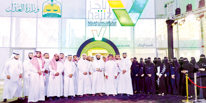 دشن معالي وزير العدل الشيخ الدكتور وليد بن محمد الصمعاني بالرياض أمس، مركز ناجز للخدمات العدلية، لتقديم نحو 100 خدمة تحت سقف واحد، للأفراد الراغبين وأصحاب الأعمال وشركاء «ناجز»، في أوقات عمل مرنة صباحية ومسائية، تيسيراً على المستفيدين، بحضور معالي وزير الإسكان ماجد بن عبد الله الحقيل. ويخدم المركز المستفيدين الراغبين في خدمات القضاء والتنفيذ والتوثيق وطلبات الإنهاءات والترجمة القانونية للصكوك والأحكام والوثائق، إضافة إلى خدمات المصالحة بالتعاون مع مركز المصالحة، والاستشارات القانونية المقدمة من قبل محامين بإشراف الهيئة السعودية للمحامين. ويسهم المركز في رفع رضى المستفيدين عن الخدمات العدلية، والارتقاء بجودة الخدمات المقدمة للمواطنين محققاً أهداف وزارة العدل في برنامج التحول الوطني لتعزيز التميز في الأداء الحكومي، للوصول إلى رؤية المملكة 2030. وتُقدم الخدمات من خلال كفاءات متخصصة بخبرات شرعية وقانونية، بالتعاون مع شركة علم من القطاع الخاص، وتعمل على تيسير خدمات المستفيدين، ومن أبرزها في قطاع القضاء، تحرير وتدقيق وإحالة صحائف الدعاوى إضافة إلى طلب التماس إعادة النظر من داخل المركز، لجميع المحاكم على مستوى مدينة الرياض، وفي قطاع التوثيق، الإفراغ العقاري وتوثيق عقود الشركات وسداد الإقرارات المالية، وفي قطاع التنفيذ رفع طلبات التنفيذ ومتابعتها، بالإضافة إلى قسم مخصص للخدمة الذاتية، يوفرخدمات التوجيه والإرشاد للمستفيدين بالمجان.