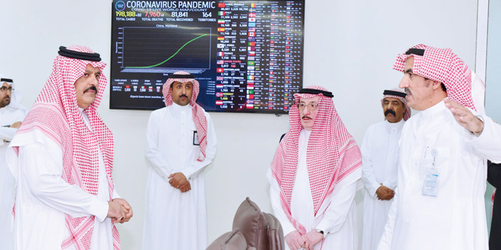 زار صاحب السمو الملكي الأمير عبدالعزيز بن سعد بن عبدالعزيز أمير منطقة حائل مركز القيادة والتحكم لصحة حائل بمقر مستشفى الملك سلمان التخصصي. وأكد سمو أمير المنطقة على الجهود التي تبذلها حكومة خادم الحرمين الشريفين تجاه التصدي لفيروس كورونا، رافعاً للقيادة شكره على كل الإجراءات الاحترازية التي جعلت المملكة قدوة تحتذي بها الدول الأخرى في الاحترافية في إدارة الأزمات، مبدياً سموه إشادته بالفريق العامل بمركز القيادة والتحكم، مشيراً إلى دور وزارة الصحة التي لعبت دوراً مهماً وفاعلاً في التصدي لفيروس كورونا في المملكة. وخلال جولة سموه بالمركز استمع لشرح مفصل من مدير صحة حائل الدكتور حمود الشمري عن غرفة التحكم التي ترصد غرف الفحص بمستشفيات المنطقة ومحافظاتها، وعرض شاشة المؤشر العالمي للإصابات بكل دول العالم.