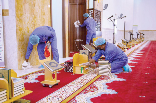 جاء ذلك في تقرير صادر عن الوزارة أوضح أن عدد المساجد التي تم تعقيمها حتى تاريخ يوم أمس الاثنين بلغ 8.724 مسجداً وجامعاً في مختلف مناطق المملكة، شملت أعمال الصيانة والتعقيم (4.362.000) متر مربع من السجاد، و(17.448.000) من المصاحف الشريفة بمختلف الأحجام، إلى جانب تعقيم 15 ألف قطعة من السجاد المستطيل و(523.440) دولاباً وحاملات مصاحف، و(69.792) دورة مياه وعدد (50) مغسلة أموات.