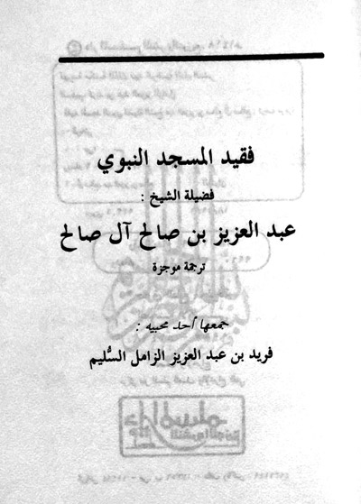 وفي جمادى الآخرة عام 1408هـ تسنى للفتى زيارة المسجد النبوي، وبينما هو جالس في الصف، في انتظار إقامة صلاة الفجر، إذ دخل الشيخ عبد العزيز بن صالح ليؤمَّ الناس، فمر أمامه، فكان اللقاء المباشر الأول والآخر، لقد سجل الفتى تلك الثواني صوتًا، وشعورًا، وصورة ملونة، وتمنى لو قام إليه وسلم عليه وقبل رأسه.