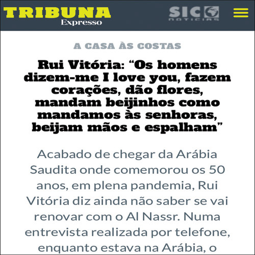 أكد البرتغالي روي فيتوريا مدرب فريق النصر الأول أن مستقبل بقائه على مقاعد بدلاء العالمي في الموسم المقبل لا يزال معلقاً لكنه لم بستبعد التجديد. وأوضح في حديث موسع لصحيفة تريبيونا اكسبريس البرتغالية نشر (السبت): عقدي مع النصر لا يزال سارياً حتى نهاية الموسم، لم نتحدث بشيء حتى الآن، لكن سنرى بنهاية الموسم ماذا نفعل؟