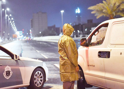 واصل رجال الأمن في العاصمة المقدسة أداء عملهم في تطبيق تعليمات منع التجول وتنفيذ الإجراءات الوقائية والاحترازية. ووثّقت عدسة وكالة الأنباء السعودية «واس» خلال جولتها مساء يوم أمس في طرقات وميادين العاصمة المقدسة بعد هطول الأمطار الحضور الكثيف لرجال الأمن على الرغم من غزارة الأمطار والتزام المواطنين والمقيمين بتعليمات قرار منع التجول والبقاء في بيوتهم.