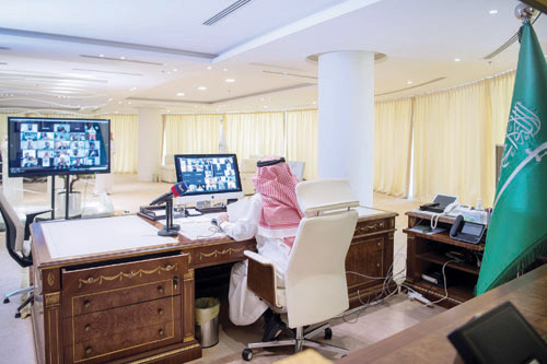 وقال معاليه: «يمر العالم بظروف استثنائية غير مسبوقة بسبب جائحة كورونا، التي أثرت على جميع مناحي الحياة، مما يستوجب تضافر جهود المجتمع الدولي، لإيجاد لقاح ناجع لهذا الوباء، ويأتي من تلك الجهود ما دعت له المملكة العربية السعودية بقيادة خادم الحرمين الشريفين الملك سلمان بن عبدالعزيز آل سعود وسمو ولي عهده الأمين -حفظهما الله- ومن خلال رئاستها لمجموعة العشرين لهذا العام، لعقد قمة استثنائية لدول المجموعة خلال شهر مارس الماضي لمناقشة سبل المضي قدماً في تنسيق الجهود العالمية لمكافحة جائحة كورونا والحد من تأثيرها الإنساني والاقتصادي».