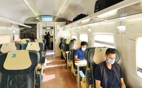 وبدأت محطات الخطوط الحديدية اليوم استقبال الركاب المسافرين بسلسلة من الإجراءات الاحترازية والتدابير الوقائية التي أعلنتها سابقًا بدءًا بقياس درجة الحرارة، والتحقق من ارتداء الكمامات، وانتهاء بالتباعد الجسدي أثناء تصعيد الركاب. وقد عمدت الخطوط الحديدية إلى إعادة توزيع مقاعد الركاب داخل القطارات بشكل قطري، وحظر استخدام المقاعد المتجاورة لضمان تحقيق المسافة اللازمة للتباعد الجسدي بين الركاب داخل القطارات لضمان سلامتهم.