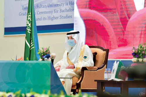 أكد صاحب السمو الملكي الأمير فهد بن سلطان بن عبد العزيز أمير منطقة تبوك رئيس مجلس أمناء جامعة فهد بن سلطان أن الدفعة الثانية عشرة من حملة درجة البكالوريوس والدفعة السابعة من حملة الماجستير من عمر الجامعة هي الأميز بين الدفعات السابقة لما مرت به من ظروف مميزة واستثنائية، مشاركاً سموه الطلاب والطالبات ومنسوبي الجامعة تعازيهم في وفاة شقيق مدير الجامعة الدكتور محمد بن عبدالله اللحيدان الذي لم يتمكن من الحضور لظروف العزاء، داعيا سموه أن يتغمد الفقيد بواسع رحمته ، وأن يلهم أسرته الصبر والسلوان.