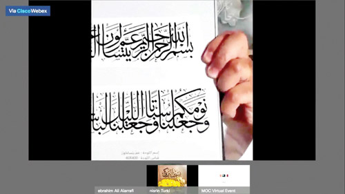 وتناول العرافي العلاقة بين الخطاط والقلم التي تساعد في الوصول إلى التكوين المثالي للحرف، ليختتم اللقاء بقصيدة للشاعر الخطاط محمد العرافي تصف حالتهم عند الكتابة فقال: