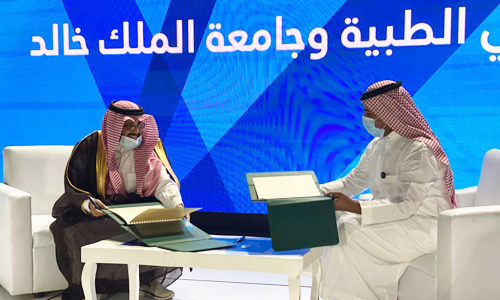 ومن ثم تم عرض مرئي لكلية البترجي وأقسام الكلية ومركز الأطباء السعوديين التخصصي وأهداف إنشائها في المنطقة ومن ثم اختتم الحفل بتوقيع اتفاقية شراكة بين جامعة الملك خالد وكلية البترجي الطبية وتوجه الحضور بعدها إلى داخل المبنى لتدشين مبادرة "نحن معكم" وزيارة ميدانية لافتتاح مركز الأطباء السعوديين التخصصي التابع لمجموعة مستشفيات السعودي الألماني.