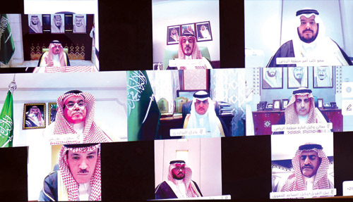 رأس صاحب السمو الملكي الأمير فيصل بن بندر بن عبدالعزيز أمير منطقة الرياض بمشاركة صاحب السمو الملكي الأمير محمد بن عبدالرحمن بن عبدالعزيز نائب أمير المنطقة بقصر الحكم أمس عبر الاتصال المرئي الاجتماع الأول لمحافظي المنطقة للعام المالي 1441- 1442هـ.