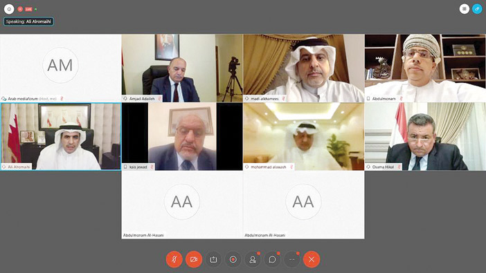 من جانبه أكد د.قيس العزاوي الأمين العام المساعد ورئيس قطاع الإعلام والاتصال بجامعة الدول العربية، أن العالم أمام جائحة لم يسبق أن مر بها العالم بهذا الشكل، قائلاً: « في الوقت الحاضر وجدنا أنفسنا أمام الكثير من التحديات للإعلام في العالم كله وليس العربي فقط، نواجه صراعًا بين شبكات مواقع التواصل الاجتماعي والإعلام التقليدي وبرزت شائعات أرعبت الجمهور، وكان على الإعلام التقليدي التصدي لها ونجح في التصدي للشائعات وتقويم الأخطاء التي حدثت بالاستعانة بالخبراء». وأعلن العزاوي أنه في جامعة الدول أن تم إصدار نشرة يومية ونشرة أسبوعية إضافة إلى تشكيل مرصد خاص لمتابعة أعداد المرضى في دول العالم والدول العربية، متابعًا: «طلبنا من الكادر الإعلامي بجامعة الدول دراسة التجارب في مواجهة الوباء وغطينا 22 دورة من حيث الإجراءات الاحترازية وكيف واجهت هذه الدول الوباء، وكل هذا جمعناه وسوف يصدر بكتاب يذكر تجارب الأمم في مواجهة الوباء بعد إجراء اتصالات بالدول العربية»، موضحاً أن أفضل دولة قامت بأداء متميز هي الأردن، وكذلك بعض الدول واجهت فوضى في معالجة الأمر، قائلًا: «هذا الكتاب سيكون صريحًا مع الجميع.. وكذلك يتضمن أنواع الأدوية بالعالم وما هي الدول التي تستخدم أدوية دون غيرها وكذلك الدول التي تجري التجارب للحصول على المصل، كلها معلومات موجوده بالكتاب وستكون متاحة للجمهور قريبًا». وعن ميثاق الشرف الإعلامي بجامعة الدول العربية أشار «العزاوي» إلى أنه كان في عام 2008 وحصل خلاف واعترضت عليه 3 أو 4 دول عربية، مؤكداً أن مواثيق الشرف الإعلامية بالعالم تقادمت ولم يعد هناك قيمة لمواثيق الشرف مضيفاً: «أصبحت الأمور تجاوزت الإعلام التقليدي نحن ليست بحاجة لقوانين ولكن بحاجة إلى توعية تربوية وتربية إعلامية وأؤيد تدريس مادة التربية الإعلامية». ولخص العزاوي توصياته في 3 نقاط وهي: كتابة ميثاق الشرف الإعلامي الذي يكتبه الإعلاميون وليست الحكومات العربية، والتدريب الإعلامي بدلاً من وجود غياب كبير عن علم الإعلام الذي أصبح علامًا كاملاً لا يمكن انتقاصه، وكذلك إعداد جيل من الشباب والشابات الإعلاميين بمواصفات دولية ويمكن أن يحدث بجهود وزراء الإعلام.