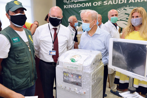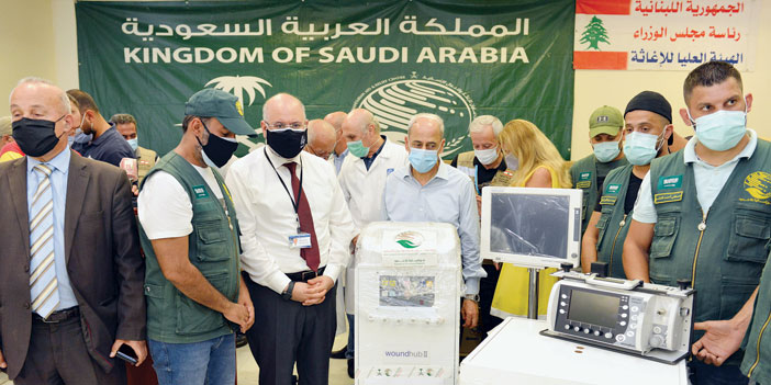 حيث سلم المركز أمس مستشفى رفيق الحريري الحكومي ببيروت مساعدات طبية تشمل أجهزة تنفس اصطناعي، وأدوات معالجة حروق، وأجهزة مراقبة للعناية الفائقة والمركزة، إلى جانب أدوية ومستلزمات طبية، وذلك بحضور مدير مكتب مركز الملك سلمان للإغاثة في لبنان فهد القناص، والأمين العام لهيئة الإغاثة اللبنانية اللواء محمد خير، ومدير المستشفى فراس الأبيض.