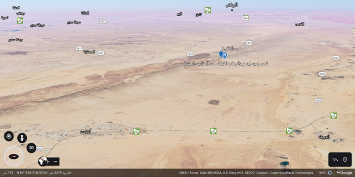 صورة من برنامج (قوقل إيرث) توضح موقع العيينة