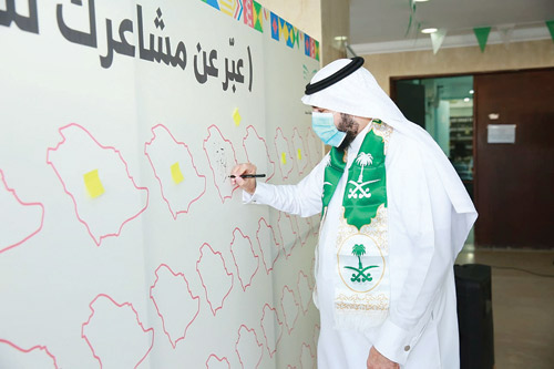 بعد ذلك دون مدير التعليم والحضور كلمات وطنية على لوحة أعدت بهذه المناسبة بمشاركة مساعديه ورؤساء الأقسام.