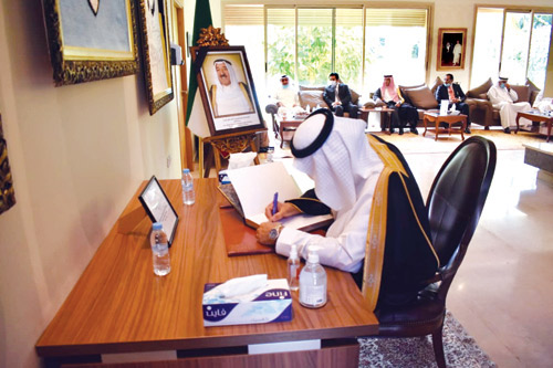 قدم سفير خادم الحرمين الشريفين لدى المملكة المغربية معالي الأستاذ/ عبدالله بن سعد الغريري ويرافقه نائب رئيس البعثة وعدد من المسؤولين في السفارة يوم الأربعاء 30/9/2020م، واجب العزاء والمواساة في وفاة حضرة صاحب السمو الشيخ صباح الأحمد الجابر الصباح أمير دولة الكويت، وذلك بمقر سفارة دولة الكويت بالرباط وأعرب معاليه عن خالص عزائه لسعادة الأستاذ/ غازي الفضلي القائم بالأعمال ومنسوبي سفارة دولة الكويت لدى المملكة المغربية، سائلا الله تعالى أن يتغمده بواسع رحمته ومغفرته، وأن يلهم الأسرة الأميرية الكريمة والحكومة الكويتية والشعب الكويتي الشقيق الصبر والسلوان.