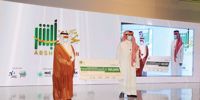 تلا ذلك تكريم الشركاء الذين ساهموا في نجاح «تحدي أبشر»، ثم أعلنت النتيجة العامة بتكريم الثلاثة الأوائل في كل من مسار الخدمات القائمة والخدمات الجديدة.