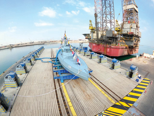 أعلنت وزارة الدفاع والهيئة العامة للصناعات العسكرية عن تدشين وتوطين أول زورق اعتراضي سريع من نوع (HSI32) مُصنَّع محلياً، إضافة إلى تدشين أول حوض عائم، وذلك ضمن خطة توطين الصناعات العسكرية في المملكة، حيث سيتم تصنيعها وتوطينها محلياً وفق أحدث المواصفات والمعايير العالمية بتعاون بين شركة CMN الفرنسية وشركة الزامل للخدمات البحرية. وشهد حفل الإطلاق أمس بمقر شركة الزامل للخدمات البحرية في المنطقة الشرقية، محافظ الهيئة العامة للصناعات العسكرية المهندس أحمد بن عبد العزيز العوهلي، وقائد القوات البحرية الفريق الركن فهد بن عبدالله الغفيلي، ومعالي رئيس الهيئة العامة للموانئ المهندس سعد بن عبدالعزيز الخلب، ورئيس مجلس إدارة مجموعة الزامل الدكتور عبدالرحمن بن عبدالله الزامل، وسفير جمهورية فرنسا لدى المملكة فرانسوا غوييت، والملحق العسكري المساعد الفرنسي، وعدد من كبار المسؤولين من الجهات ذات العلاقة. وبهذه المناسبة، ثمن محافظ الهيئة العامة للصناعات العسكرية المهندس أحمد العوهلي الدعم والرعاية غير المحدودة من لدن القيادة الرشيدة -أيدها الله- التي سخّرت كل الإمكانات والموارد لدعم هذا القطاع الواعد، لافتاً إلى أن صناعة وتوطين منظومة الزوارق الاعتراضية السريعة من نوع (HSI32) يأتي ضمن توجه الهيئة الإستراتيجي على صعيد تحقيق الأولويات الوطنية ووضع التشريعات الخاصة بإرساء عقود التصنيع العسكري ودعم وتمكين المصنعين المحليين، وتطوير الشركات المحلية الواعدة لتكون شركات رائدة، وكذلك دعم الشركات الوطنية الكبرى لتعزيز موقعها عالمياً. وأضاف أن منظومة الزوارق السريعة ستسهم في رفع مستوى الجاهزية العسكرية والأمنية للقوات البحرية السعودية كما ستسهم في تعزيز قوة الأمن البحري في المنطقة وحماية المصالح الحيوية والإستراتيجية للمملكة. وأشار العوهلي إلى أن توطين صناعة هذه المنظومات يأتي تأكيداً على عزم الهيئة المضي قدماً نحو تحقيق هدفها الإستراتيجي الأول والمتمثل في توطين ما يزيد عن 50 % من إنفاق المملكة على المعدات والخدمات العسكرية، إضافة إلى توسيع نطاق وأثر القدرات الحالية بحلول 2030.
