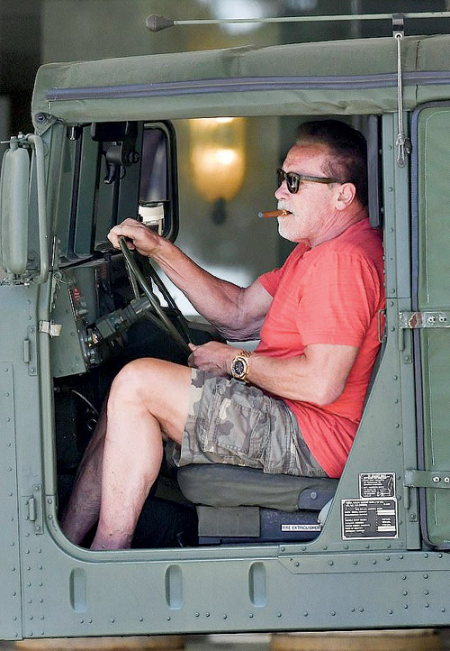 يبدو أن نجم الأكشن الشهير أرنولد شوارزنيجر كان لديه بعض المهمات التي كان عليه تلبيتها بسيارته الجيب العسكرية الضخمة «Humvee army jeep».