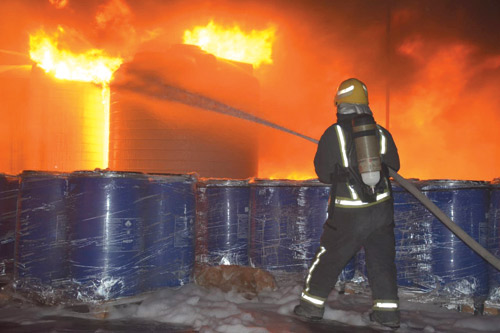 باشرت فرق الدفاع المدني بمنطقة الرياض أمس حريقاً في أحد المصانع بالصناعية الثانية، وقامت فرق التدخل في حوادث المواد الخطرة بمباشرة أعمال العزل والتطهير للمواد الأولية المستخدمة في المصنع، مع استمرار عملية إخماد الحريق.