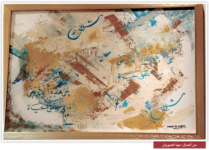 ولدينا في المملكة أسماء نفخر بها من فنانين حروفيين أو أنتجوا بعض اللوحات الحروفية منهم: نبيل النجدي، ناصر الموسى، يوسف إبراهيم، عثمان الخزيم، زمان جاسم، فيصل السمرة، محمد الرباط، محمد العجلان، نهار مرزوق، سامي البار، فهد خليف، فهد غرمان، خالد الصوينع، محمد شراحيلي، عبد القادر العبيدان، سعد الملحم، سلطان السويدي، سلطان العيسى، إبراهيم العرافي، سعود خان، لولوة الحمود، خلود القصيبي، إيمان الجشي، رجاء الشافعي، بيان باربود... وغيرهم الكثير الذين قدموا لنا لوحات حروفية في غاية الجمال والروعة.