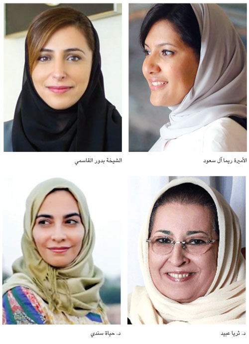 وهن «فاطمة الفهرية، الأميرة فاطمة إسماعيل، الأميرة عفت آل ثنيان الفيصل».