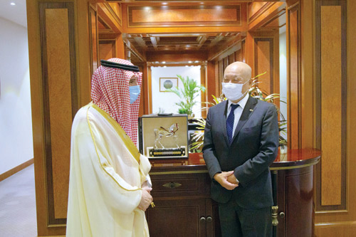 استقبل معالي وزير الدولة للشؤون الخارجية وعضو مجلس الوزراء الأستاذ عادل بن أحمد الجبير في ديوان الوزارة بالرياض أمس معالي سفير الجمهورية التونسية لدى المملكة هشام الفوراتي. وجرى خلال الاستقبال استعراض العلاقات الثنائية بين البلدين الشقيقين، وعدد من الموضوعات ذات الاهتمام المشترك. حضر الاستقبال مدير عام مكتب معالي وزير الدولة للشؤون الخارجية وعضو مجلس الوزراء السفير خالد بن مساعد العنقري، ووكيل وزارة الخارجية لشؤون المراسم المكلف مشاري بن نحيت. كما استقبل الجبير في ديوان الوزارة بالرياض أمس سفير اليابان لدى المملكة تسوكاسا أيمورا، الذي ودع معاليه بمناسبة انتهاء فترة عمله سفيرا لبلاده لدى المملكة. وثمن معاليه الجهود الطيبة التي بذلها السفير تسوكاسا في توثيق وتعزيز العلاقات بين المملكة واليابان، متمنياً له دوام التوفيق. حضر الاستقبال وكيل وزارة الخارجية لشؤون المراسم المكلف مشاري بن نحيت.