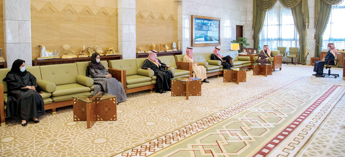 وفي بداية الاستقبال استعرض العجلان جهود غرفة الرياض أثناء الجائحة والأعمال التي قامت بها لخدمة قطاع الأعمال ومساندة جهود الدولة في التخفيف من آثار الجائحة. ونوه سموه بدورهم وإسهاماتهم الإيجابية والوطنية، متمنياً لهم التوفيق والنجاح. من جانبه أعرب رئيس وأعضاء مجلس غرفة الرياض عن شكرهم لسموه على دعمه لأعمال غرفة الرياض واهتمامه الكامل بإنجازاتها ومشاركتها التنموية والاقتصادية.