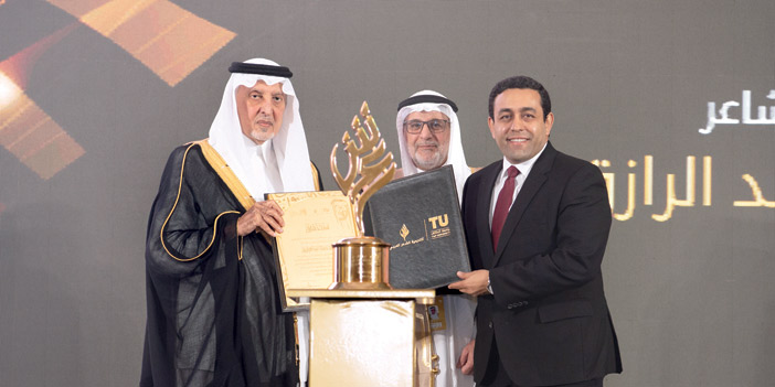 كرّم مستشار خادم الحرمين الشريفين أمير منطقة مكة المكرمة صاحب السمو الملكي الأمير خالد الفيصل الفائزين بجائزة الأمير عبدالله الفيصل العالمية للشعر العربي في دورتها الثانية، البالغة قيمتها مليون ريال موزعة على أربعة فروع.