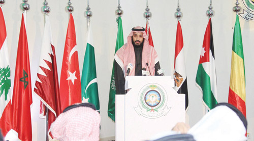 وأثمرت جهود سمو ولي العهد عن إعلان تشكيل التحالف الإسلامي العسكري في شهر ديسمبر 2015م لمحاربة الإرهاب، ومواجهة التطرف والإرهاب، بمساندة الدول الصديقة المحبة للسلام والمنظمات الدولية، والعمل على تنسيق وتوحيد جهودها في المجال الفكري والإعلامي، ومحاربة تمويل الإرهاب، والإسهام بفاعلية مع الجهود الدولية الأخرى لحفظ السلم والأمن الدوليَّين.