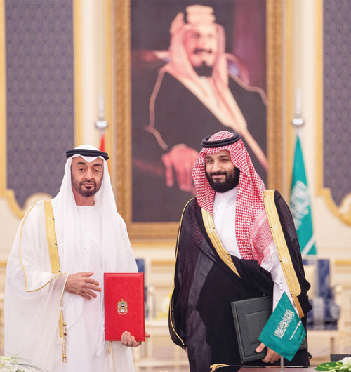 كما أعلن في الشهر نفسه اعتماد استراتيجية مشتركة للتكامل بين المملكة العربية السعودية ودولة الإمارات العربية المتحدة الشقيقة اقتصاديًّا وتنمويًّا وعسكريًّا عبر 44 مشروعًا، أطلق عليها «استراتيجية العزم»، التي عمل عليها 350 مسؤولاً من البلدين من 139 جهة حكومية وسيادية وعسكرية، خلال 12 شهرًا، ومن خلال ثلاثة محاور رئيسية، هي: المحور الاقتصادي، والمحور البشري والمعرفي، والمحور السياسي والأمني والعسكري.