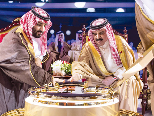 كما شهدت العاصمة البحرينية المنامة في شهر ربيع الأول 1440 هـ تدشين جلالة الملك حمد بن عيسى آل خليفة ملك مملكة البحرين وصاحب السمو الملكي الأمير محمد بن سلمان بن عبدالعزيز خط أنابيب النفط الجديد بتعاون سعودي - بحريني، بمعدل ضخ يبلغ حاليًا 220 ألف برميل يوميًّا، وبسعة قصوى تصل إلى 350 ألف برميل يوميًّا، وبطول يبلغ 110 كم، يربط بين معامل بقيق السعودية ومصفاة باكو البحرينية.