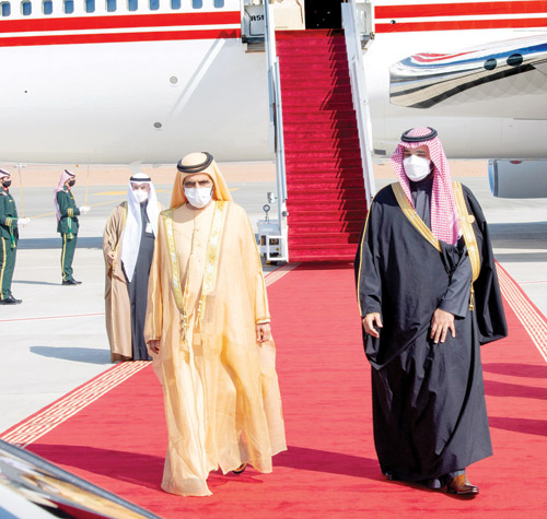 كما وصل صاحب السمو الشيخ محمد بن راشد آل مكتوم نائب رئيس دولة الإمارات العربية المتحدة رئيس مجلس الوزراء حاكم دبي. وكان في استقباله في مطار الأمير عبدالمجيد بن عبدالعزيز في العلا صاحب السمو الملكي الأمير محمد بن سلمان بن عبدالعزيز ولي العهد نائب رئيس مجلس الوزراء وزير الدفاع الذي رحب به وبمرافقيه في المملكة العربية السعودية. كما كان في استقباله معالي الأمين العام لمجلس التعاون لدول الخليج العربية الدكتور نايف فلاح الحجرف وسفير دولة الإمارات لدى المملكة الشيخ شخبوط بن نهيان آل نهيان.