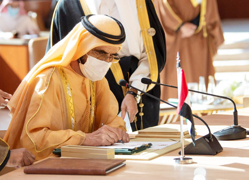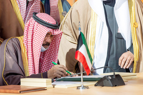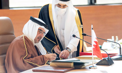 إثر ذلك وقع قادة ورؤساء وفود دول مجلس التعاون الخليجي على البيان الختامي للقمة وبيان العلا.